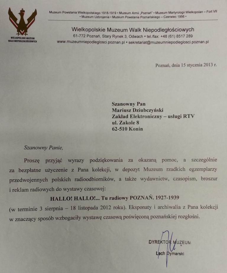 Miło mi zakomunikować, że na wystawie "Hallo! Hallo!... tu radiowy Poznań" 1927-1939, która odbyła się